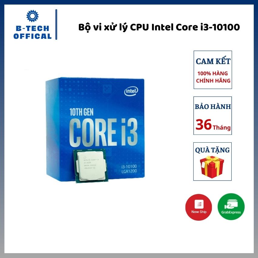 Máy tính & Laptop > Linh Kiện Máy Tính > CPU - Bộ Vi Xử Lý || Bộ vi xử lý CPU Intel Core i3-10100 (3.6GHz turbo up to 4.3Ghz, 4 nhân 8 luồng, 6MB Cache, 65W) - Socket Intel LGA 1200Còn hàng