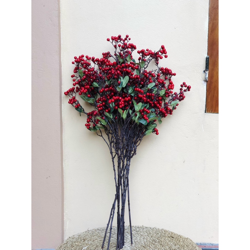 Nhà cửa & Đời sống > Trang trí nhà cửa > Hoa trang trí || [ VIDEO THẬT] Hoa lụa cao cấp Hoa giả cành Cherry anh đào đỏ trang trí nhà cửaCòn hàng