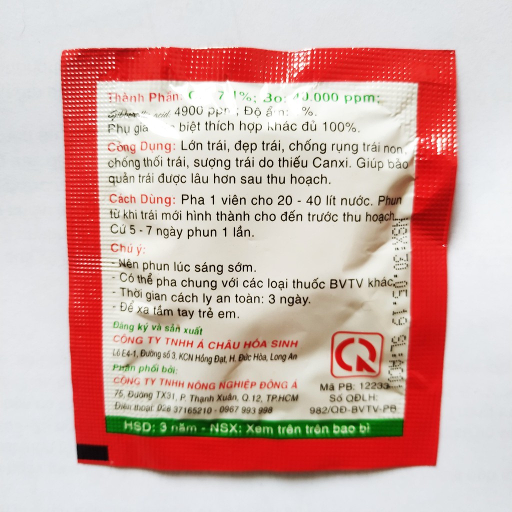Phân bón lá AC Caboron Canxi + Bo lớn trái, dầy vỏ, chống thối trái, héo trái, nổ trái và rụng trái non. Ngăn ngừa bệnh thán thư, giúp bảo quản trái được lâu hơn.
