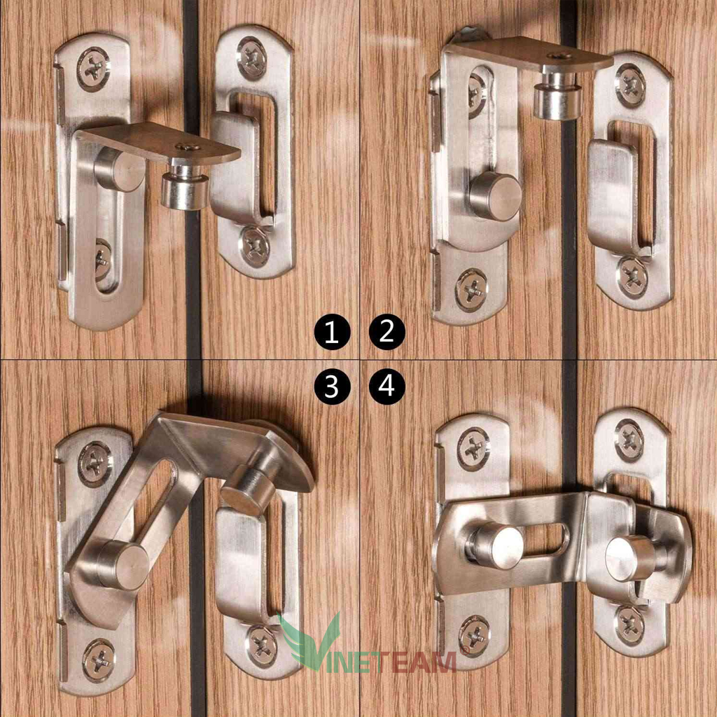 Vinetteam Chốt Khóa Cài Cửa Góc Vuông 90 Độ Bằng Thép Không Gỉ, Then Cửa Dạng Chữ L Có Chốt Cố Định Thanh Gạt Loại To An Toàn, Chắc Chắn - hàng chính hãng
