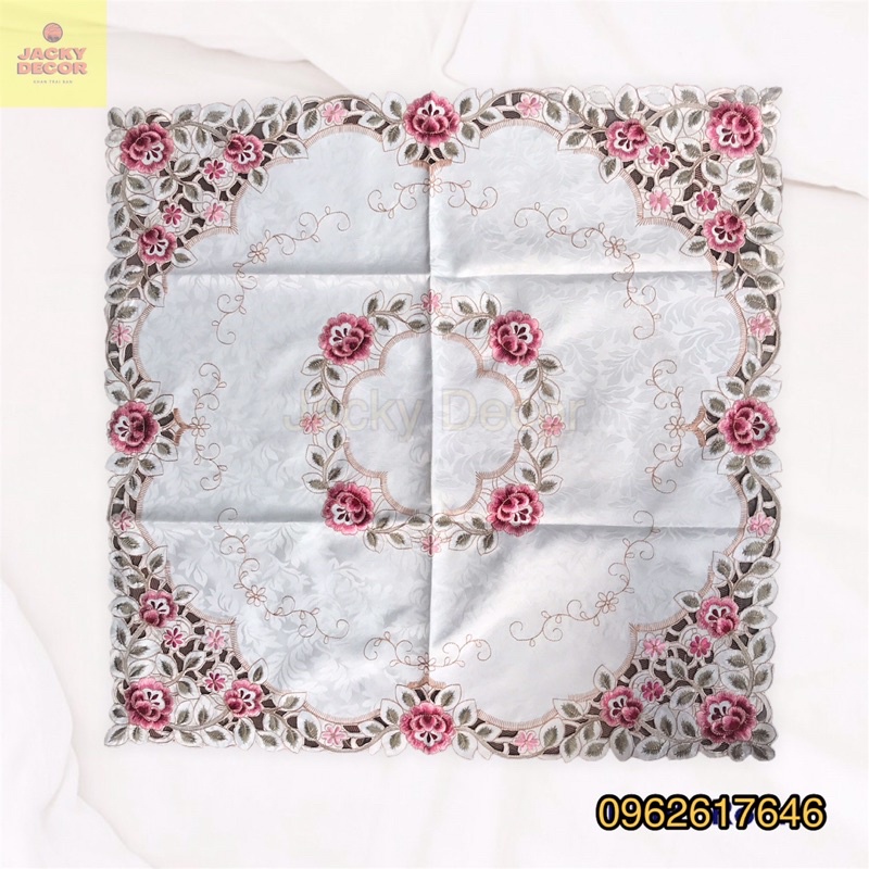 📣 KHĂN TRẢI BÀN VUÔNG 90cm THÊU HOA NHẬT BẢN 📣👉Chất liệu: Khăn được sản xuất trên dây chuyền hiện đại theo công nghệ Nhật Bản, chất liệu vải cotton thêu hoa văn trang trí, dày dặn.