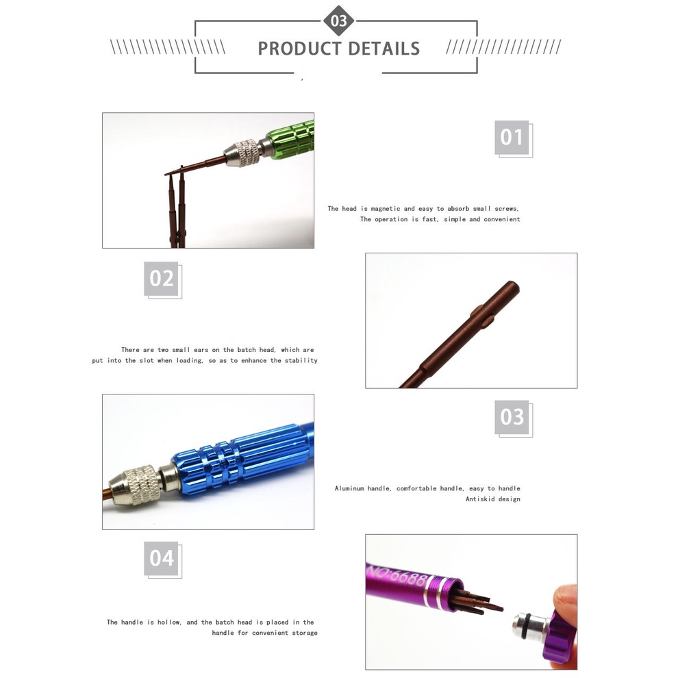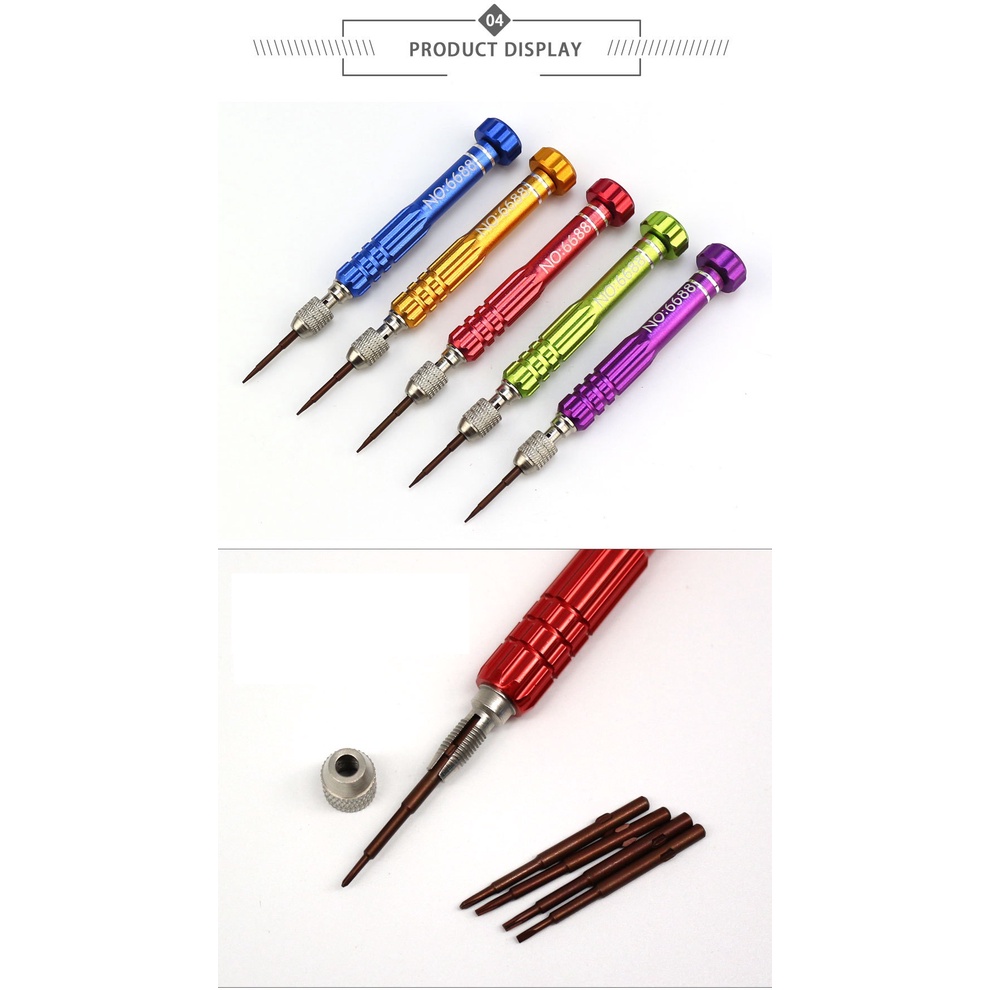 Bộ vít 5 đầu mở trong 1 cây thuận tiện mang theo lúc làm việc, di chuyển.
