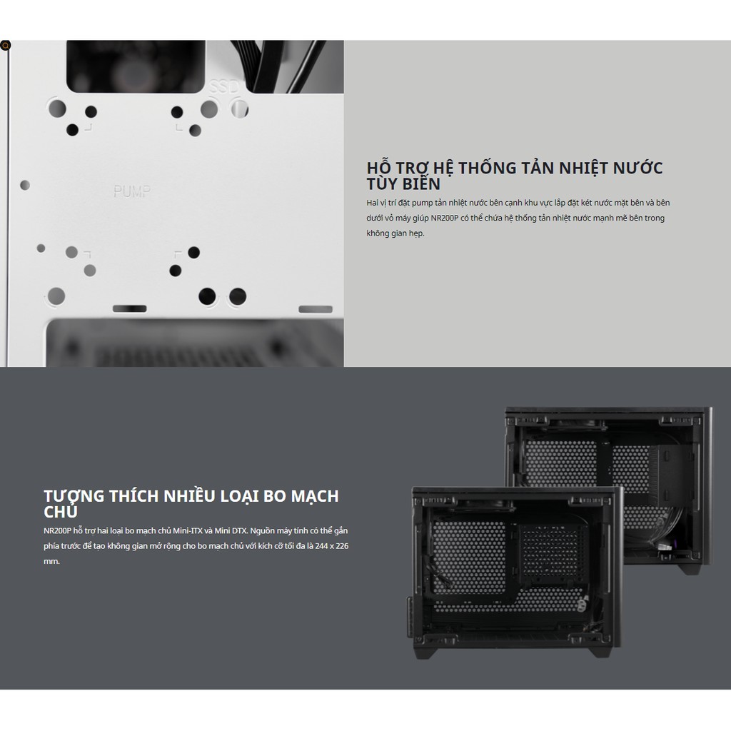 Hỗ trợ làm mát tùy chỉnh: Hai vị trí bơm làm mát bằng chất lỏng cùng với vị trí lắp bộ tản nhiệt bên và dưới cùng cho phép các bản dựng làm mát bằng nước tùy chỉnh, mạnh mẽ bên trong một vỏ máy nhỏ gọn