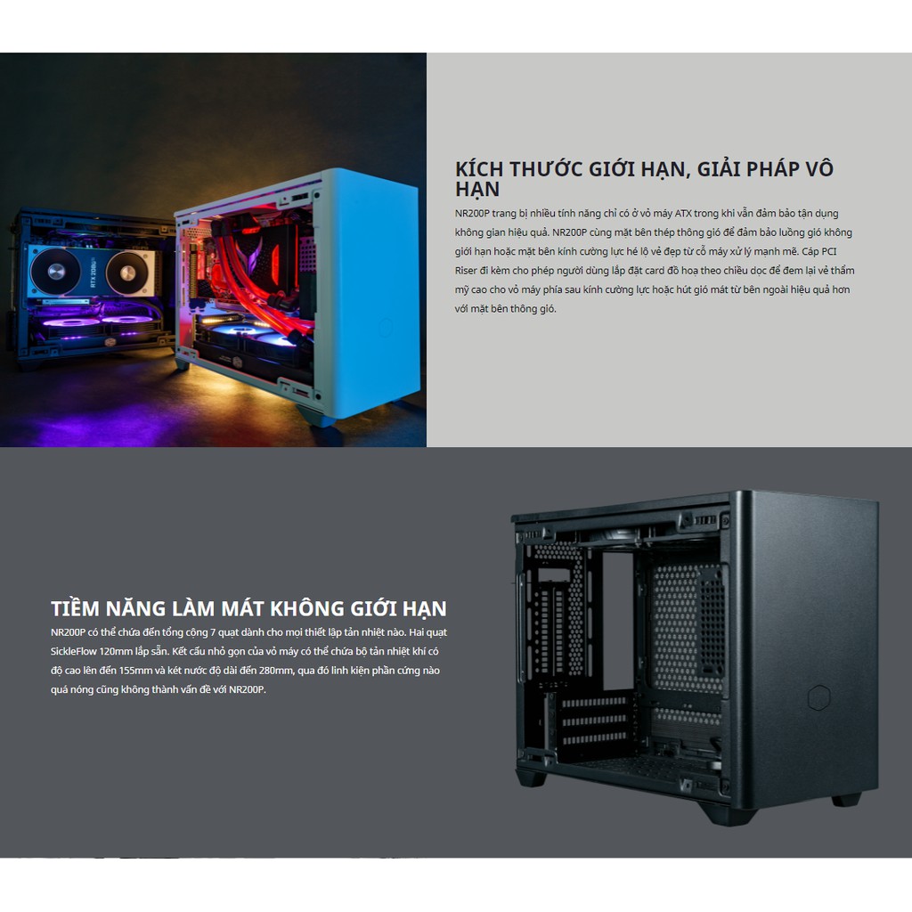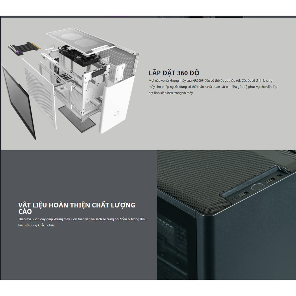 - NR200P: mặt bên có 2 tùy chọn cả mặt thép và mặt kính đi kèm theo để thay đổi theo nhu cầu sử dụng. có cáp rise pci 3.0 đi kèm để dựng vga.