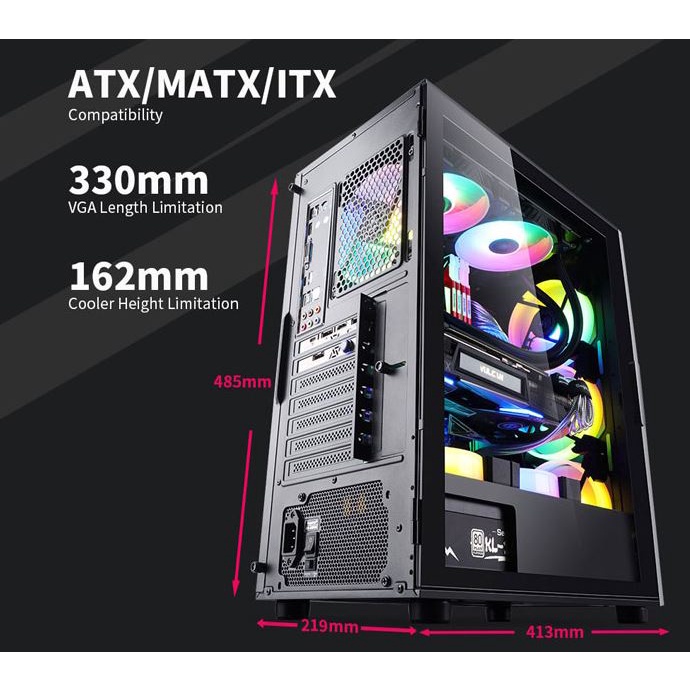 -Chiều dài card đồ họa tối đa: 300mm (làm mát bằng nước 240mm ở mặt trước); 330m (quạt ở mặt trước)