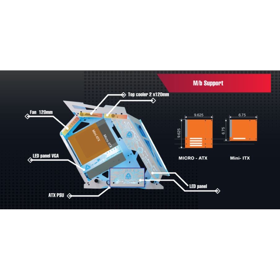 - Mainboard support M-ATX/Mini ITX