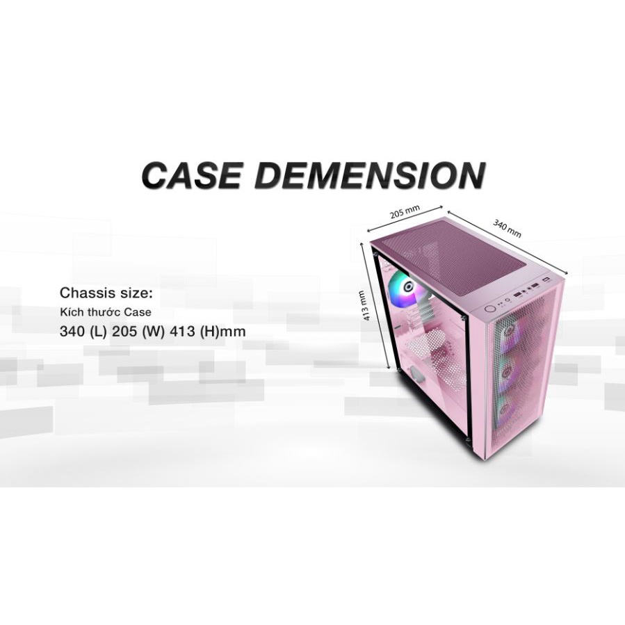 - Kích thước Case L340 x W205 x H413 mm