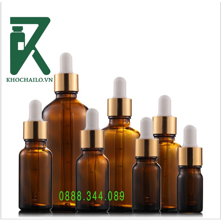 Vỏ chai lọ thủy tinh chai chiết tinh dầu,serum nâu,khoen vàng ống bóp thủy tinh dung tích 10ml,15ml,20ml,30ml,50ml,100ml