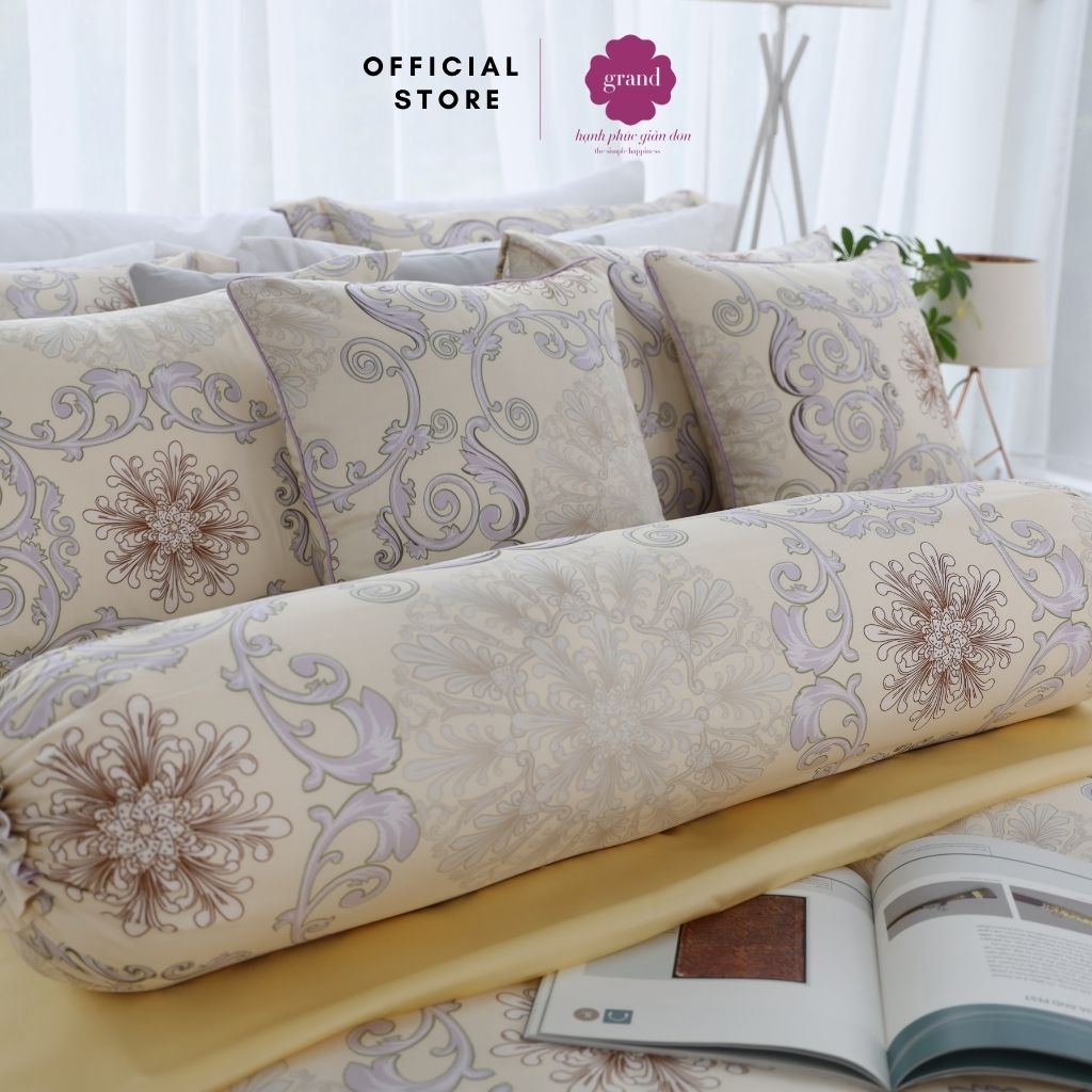 Giới thiệu Vỏ gối ôm lụa sateen, tơ thiên nhiên Hàn Quốc by GRAND, hoạ tiết hoa cổ điển, sang trọng