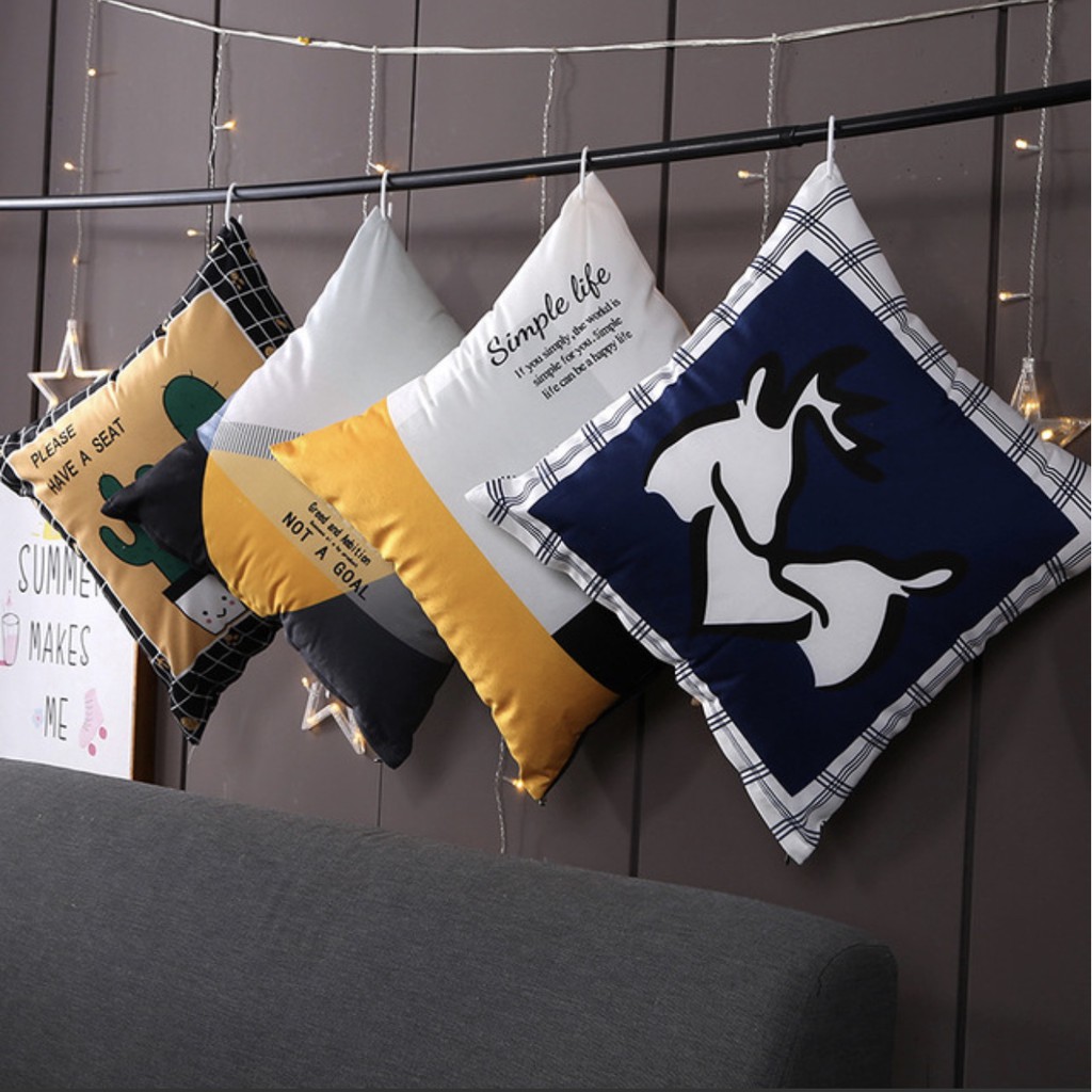 Vỏ gối linen phủ lớp nhung mềm mại, in 2 mặt giống nhau cao cấp, có dây kéo hạt dưaKích thước: 45*45cm.