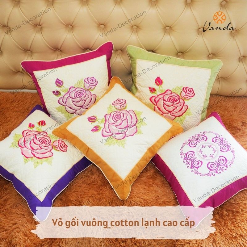 Vỏ Gối Vuông tựa lưng ⚜️Gối vuông tựa lưng⚜️ Gối vuông tựa lưng Thêu Satin hàng đẹp dày dặn chất liệu cotton