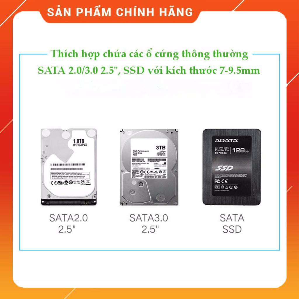 Hộp ổ cứng cắm ngoài thích hợp dùng để đựng ổ cứng ngoài SATA 2.0/3.0 chuẩn 2.5" và SATA SSDVới đầu vào USB 3.0 dây cáp dài 30CM