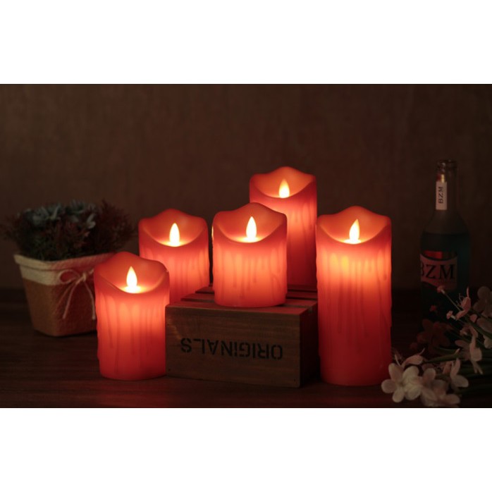 [VỎ SÁP, TIM LẮC LƯ] Nến điện tử vỏ sáp đỏ tim lắc, kiểu sáp chảy, đường kính 7.5cm