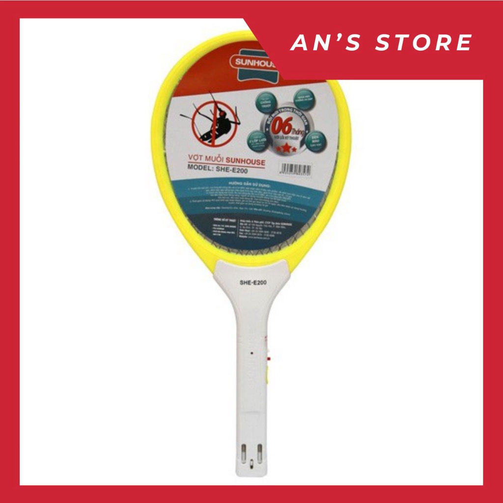 Vợt muỗi Sunhouse SHE-E200 3 lớp lưới điện tay cầm chống trượt tích hợp đèn báo sạc màu vàng chính hãng