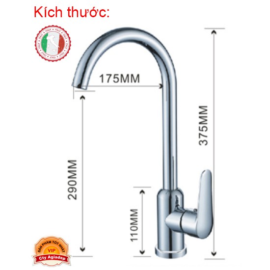 Giới thiệu Vòi bếp, vòi bồn rửa chén nóng lạnh - Hàng cao cấp ITALIA SUS304 M2 (sáng bóng đẹp) + 2 dây cấp