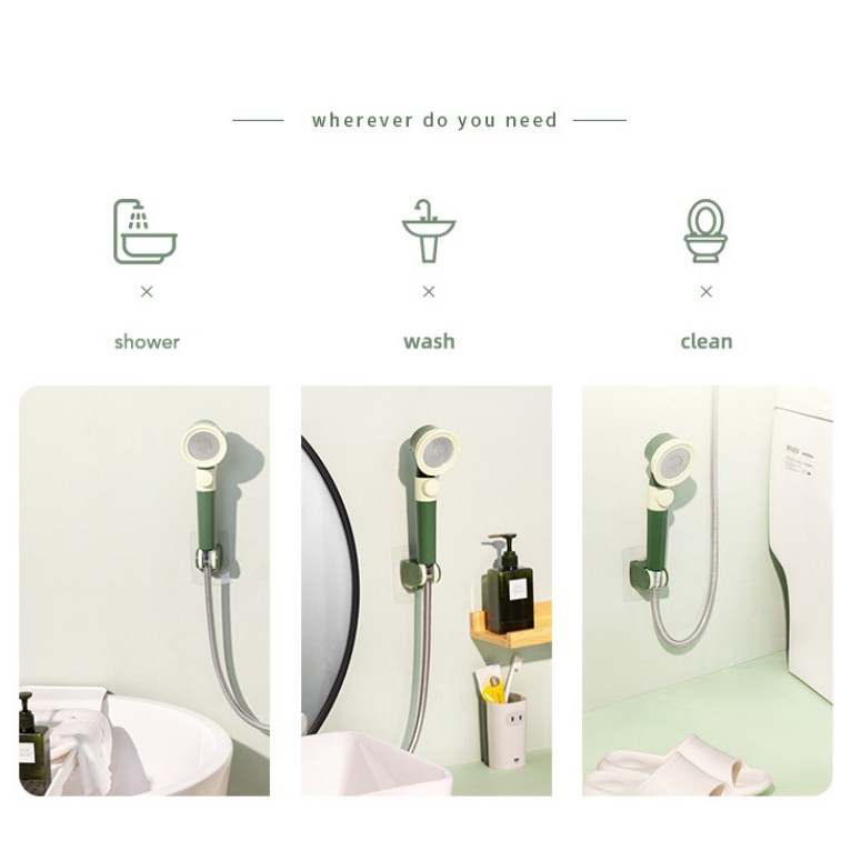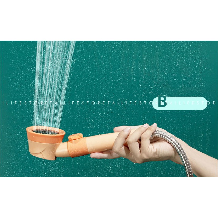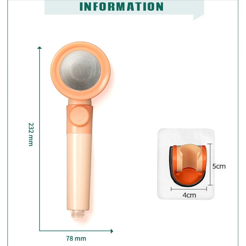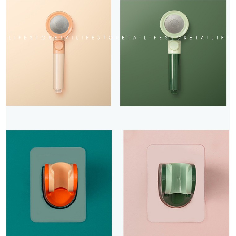 Vòi hoa sen 4 chức năng phun nước mạnh yếu có thể tháo rời kèm khay đỡ tay sen, màu xanh lá và cam hồng rất thời trangNgoài 4 chức năng chính còn thêm màu sắc rất thời trang
