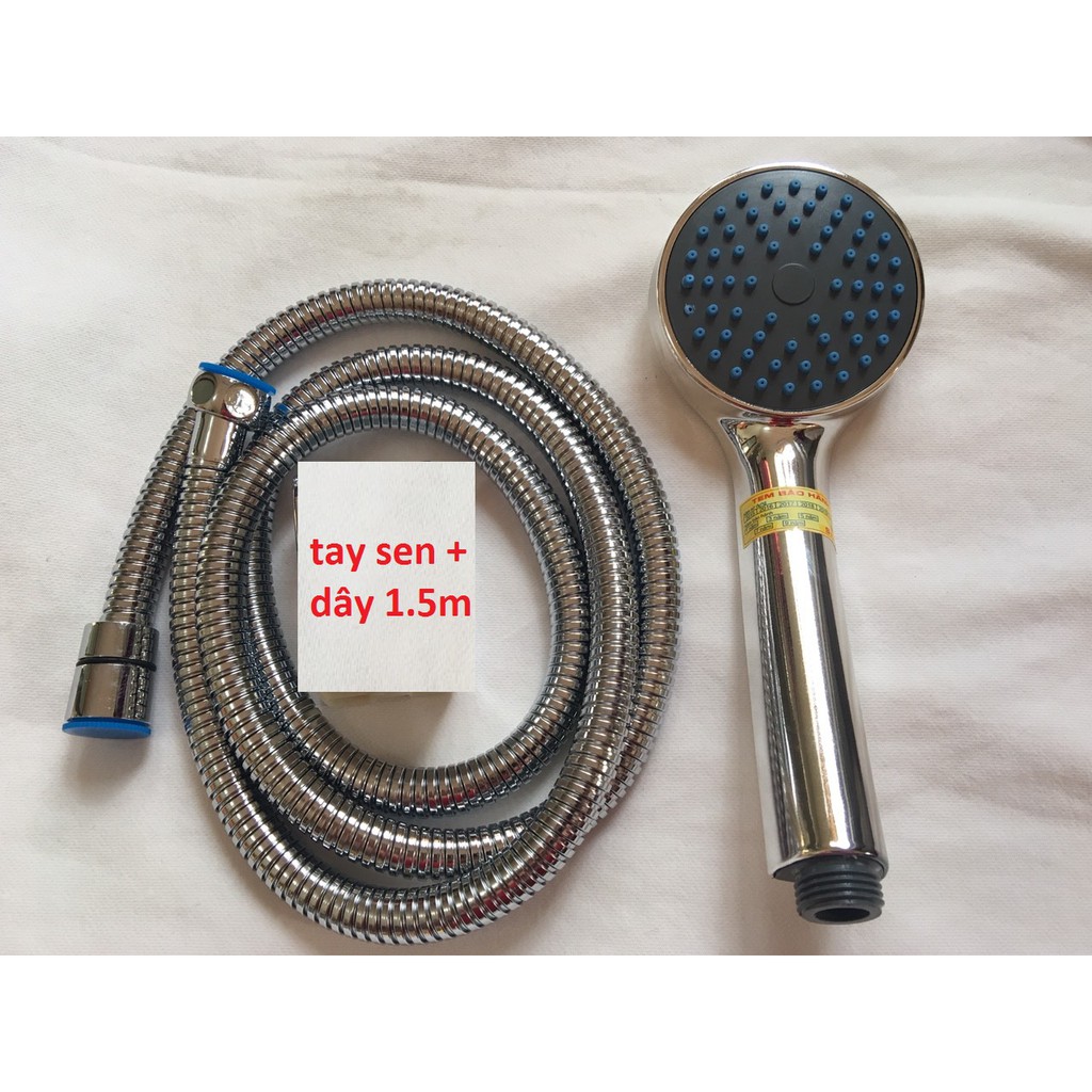 - Chất liệu: Tay sen - Nhựa ABS mạ Chrome, Dây Inox ruột cao su EDPM- Bao gồm: Tay sen+ dây inox 201 1.5m + cài + ốc
