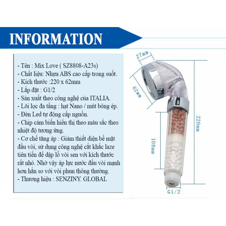 ẢN PHẨM VÒI HOA SEN MIX LOVE TĂNG ÁP – LỌC NƯỚC – ĐÈN LED ĐỔI MÀU THEO NHIỆT ĐỘVới sản phẩm vòi hoa sen tăng áp lọc nước đèn Led đổi màu theo nhiệt độ của Senziny, khách hàng như được trang hoàng cho không gian phòng tắm nhà mình bằng những ánh sáng lung linh, lại còn tiết kiệm nước và tuyệt đối an toàn cho người sử dụng, không còn nguy cơ bỏng nước ở già và trẻ nhỏ.