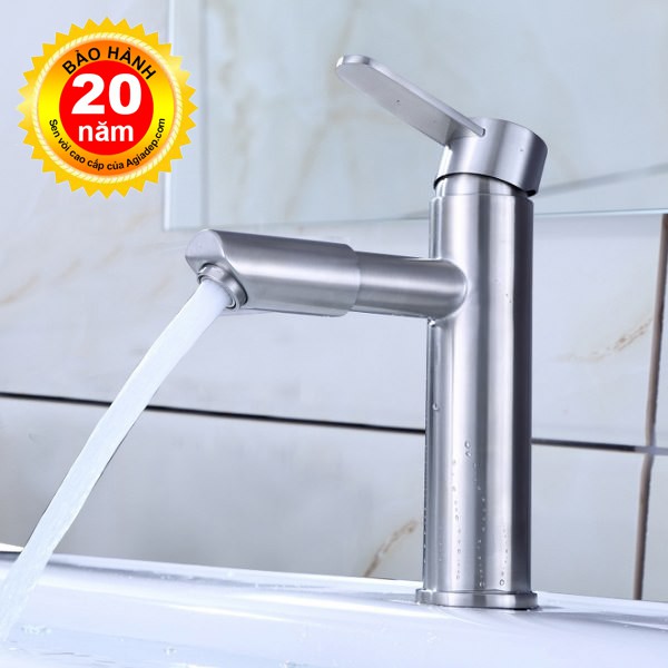 Nhà cửa & Đời sống > Dụng cụ & Thiết bị tiện ích > Chậu rửa & vòi nước || Vòi Lavabo nóng lạnh (trụ tròn, vòi thẳng, đầu xoay 360) SUS304 - Cao cấp ITALIA (Kèm đôi dây cấp nước)Còn hàng