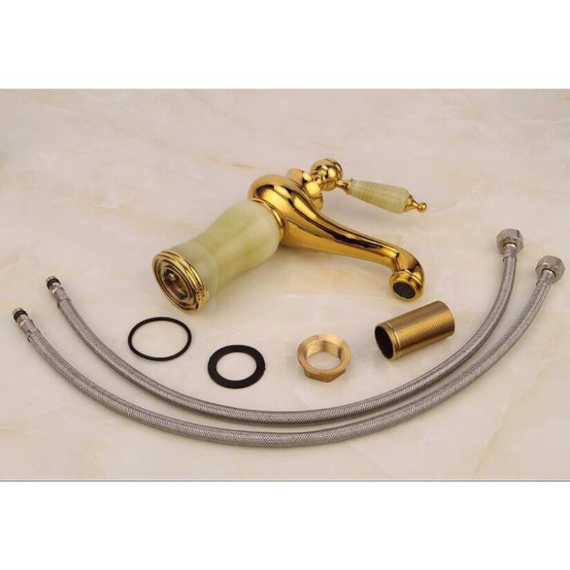 Nhà cửa & Đời sống > Dụng cụ & Thiết bị tiện ích > Chậu rửa & vòi nước || Vòi Lavabo nóng lạnh vàng gắn đá nóng sang trọng, siêu bền,Còn hàng