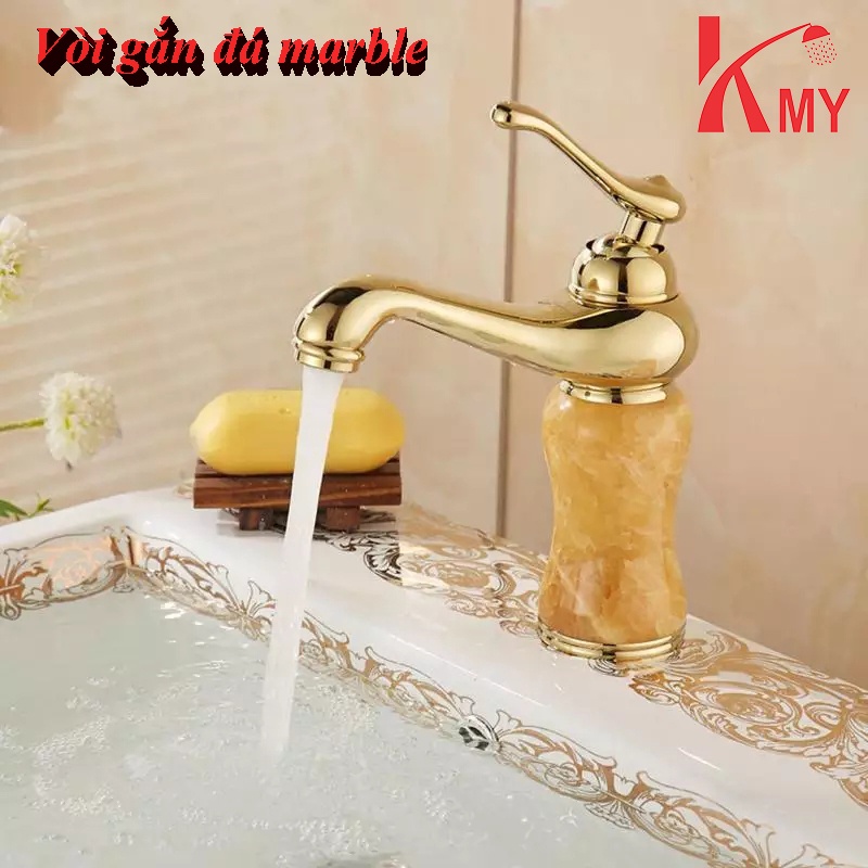 Vòi Lavabo vàng gắn đá marble sang trọng, siêu bền KMY (SL-038)