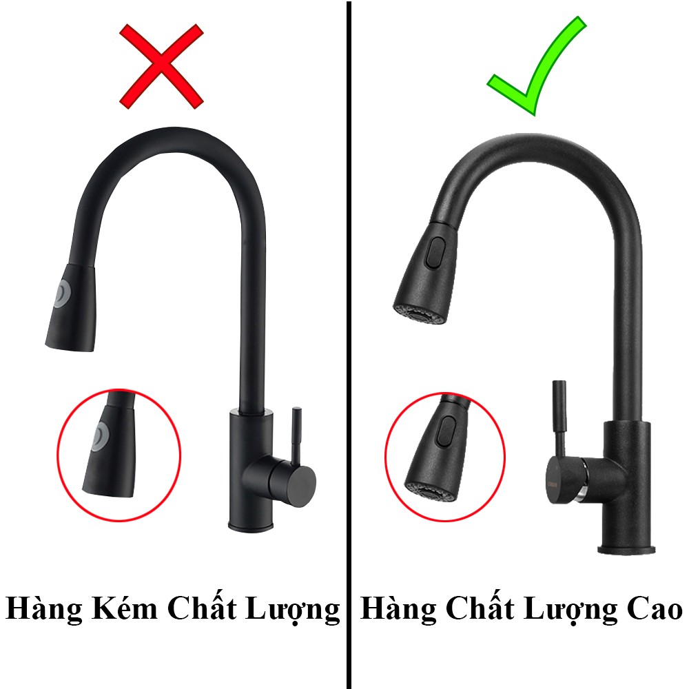 - Vòi rửa bát nóng lạnh cao cấp dây rút đen không chứa thành phần chì (Pb) nên cho nguồn nước an toàn vệ sinh