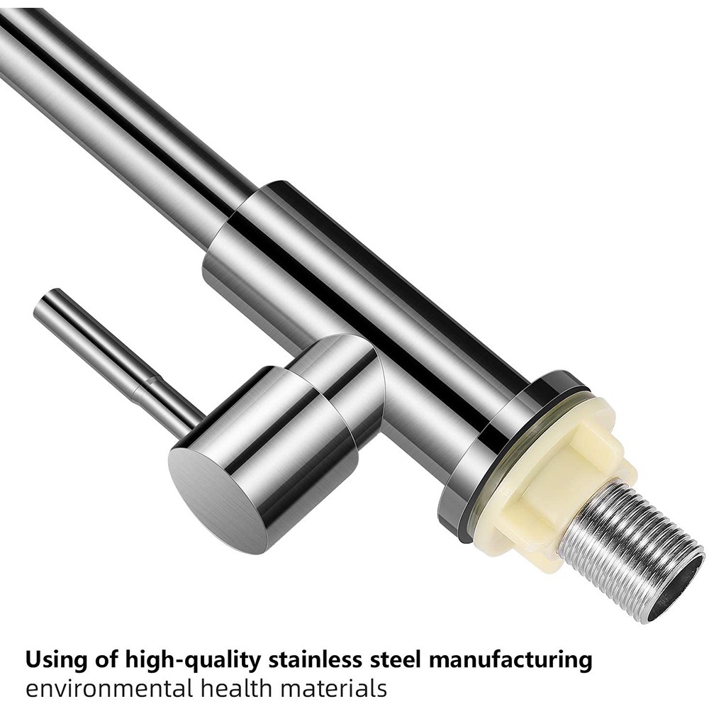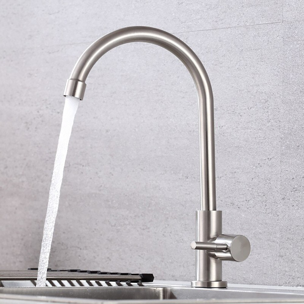 Vòi rửa chén lạnh có chất liệu inox SUS 304 tinh khiết, sáng bóng, bền bỉ.