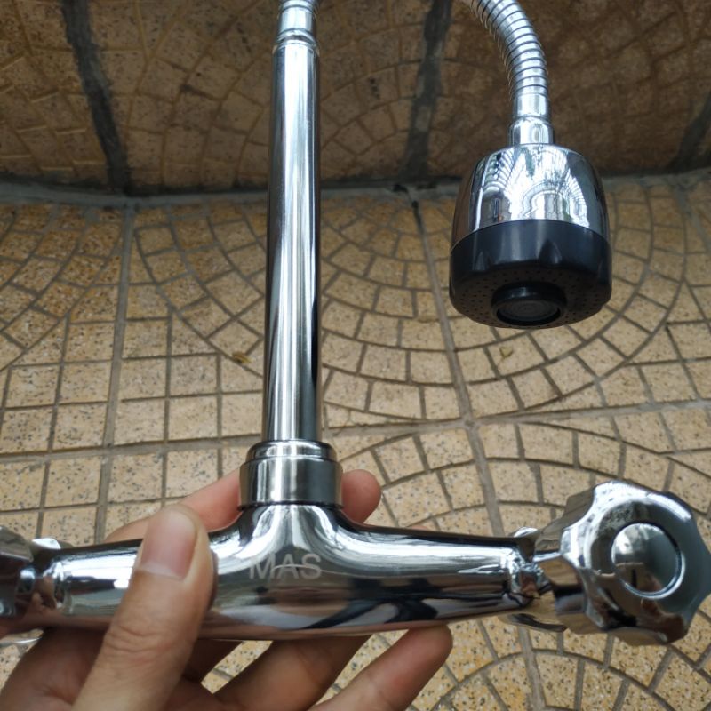 Nhà cửa & Đời sống > Dụng cụ & Thiết bị tiện ích > Chậu rửa & vòi nước || Vòi rửa chén bát nóng lạnh gắn tường lò xo van khóa képCòn hàng