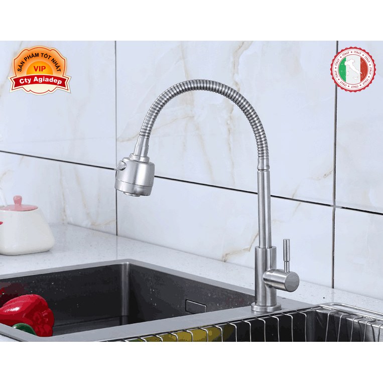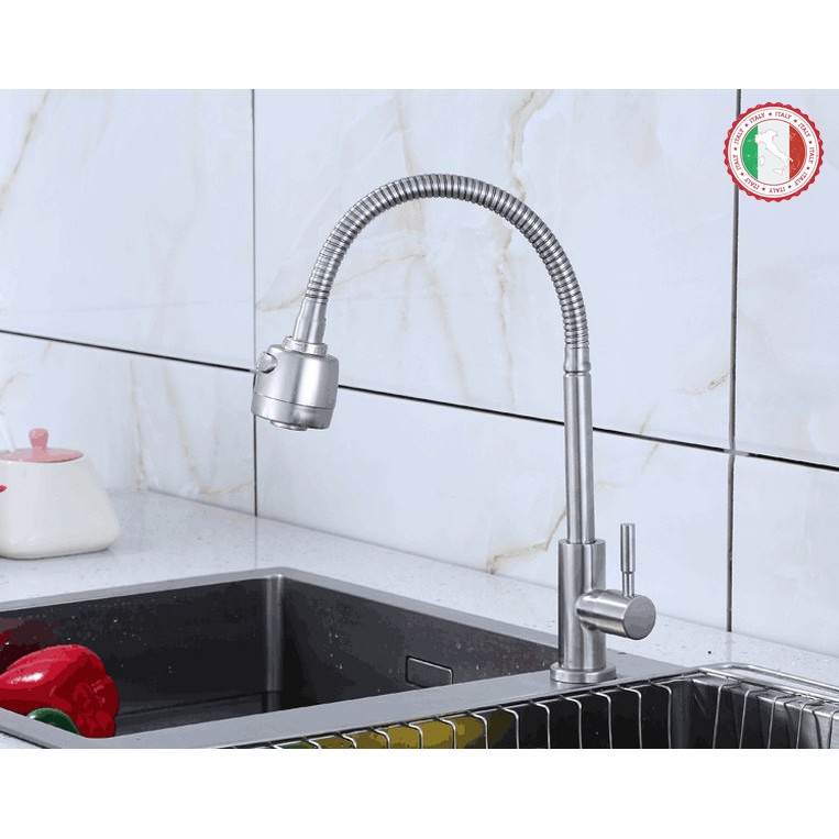 Nhà cửa & Đời sống > Dụng cụ & Thiết bị tiện ích > Chậu rửa & vòi nước || Vòi rửa chén (chỉ lạnh, cổ mềm) SUS304 - Hàng Cao cấp ITALIA (kèm dây cấp nước)Còn hàng