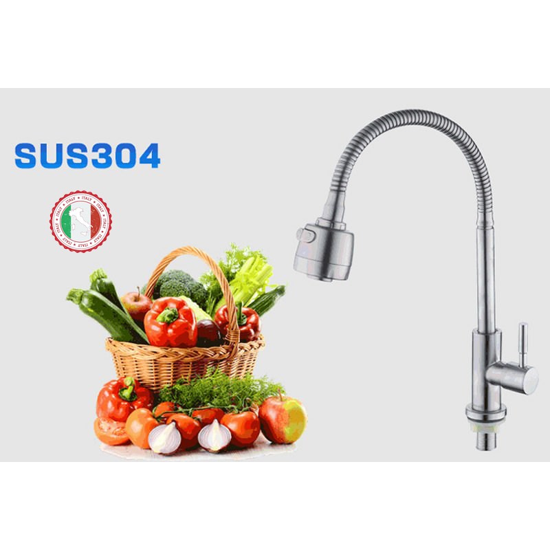 Vòi rửa chén (chỉ lạnh, cổ mềm) SUS304 - Hàng Cao cấp ITALIA (kèm dây cấp nước)