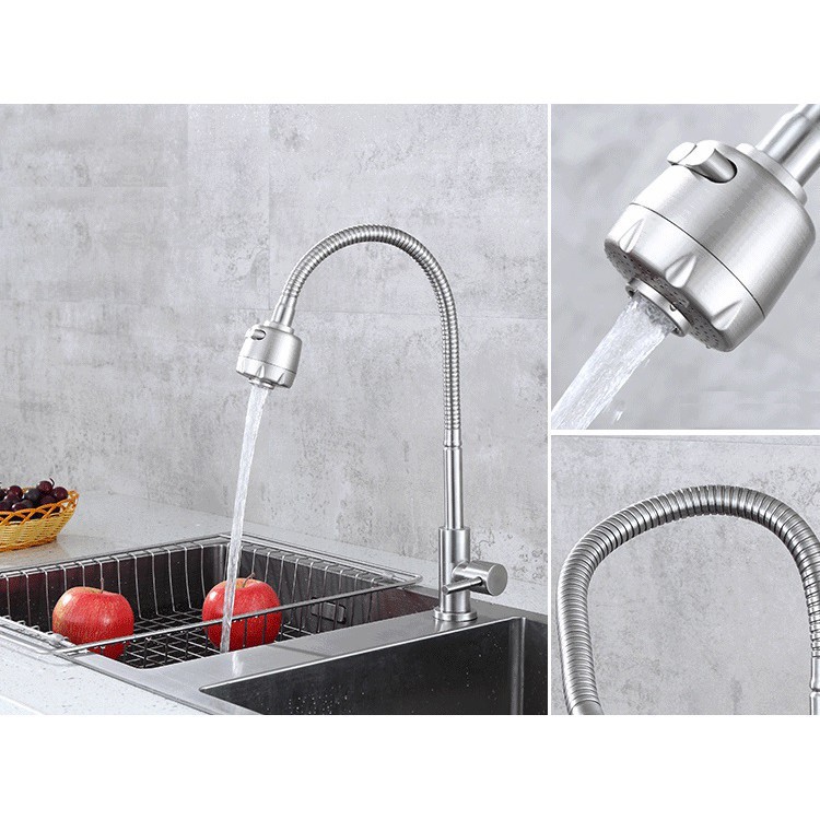 Vòi rửa chén lạnh inox uốn 360 độ [ siêu bền ] - Vòi rửa bát nhà bếp lò xo dẻo inox 304 uốn 360 độ - 2 chế độ nước