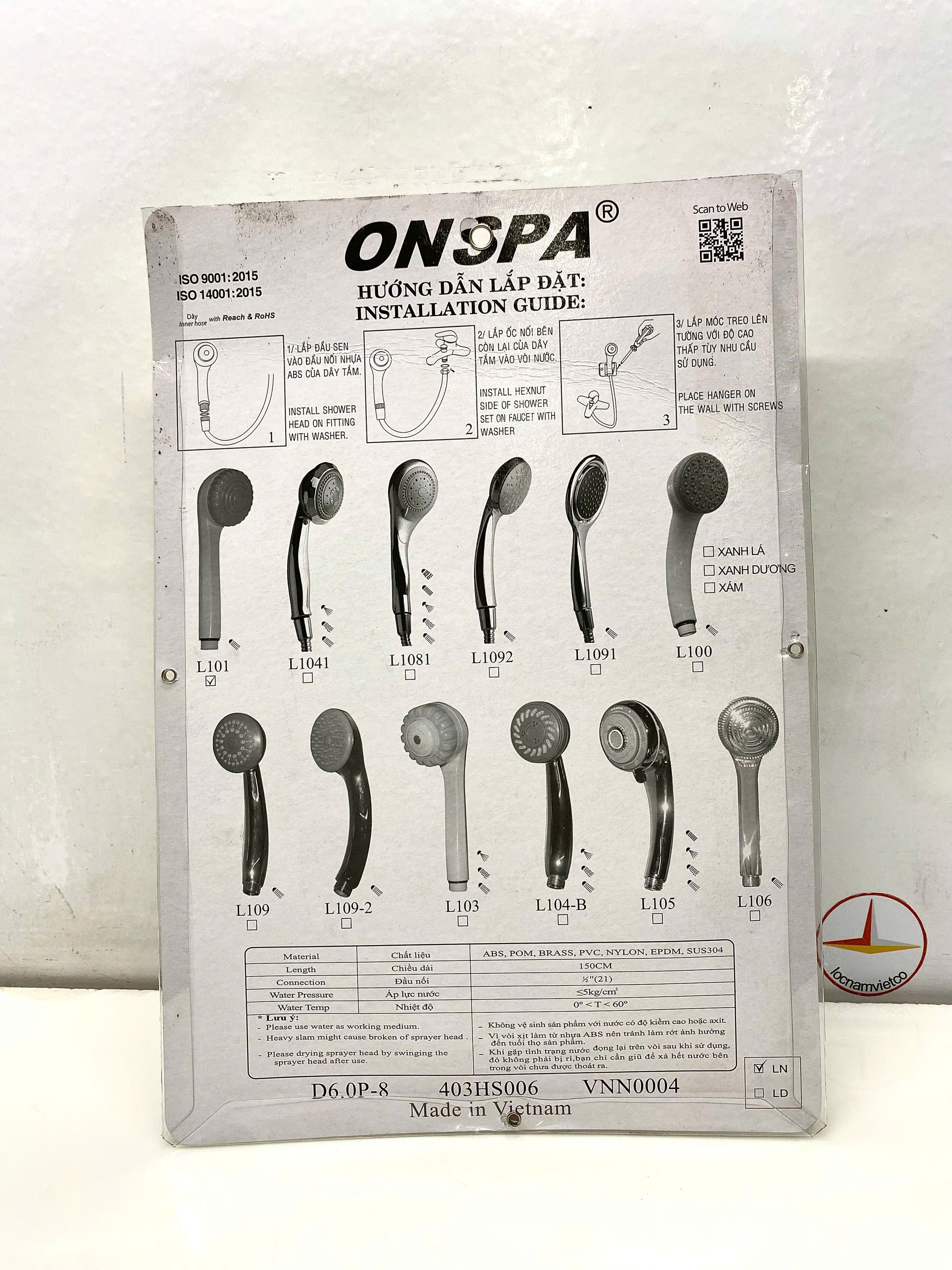 Bộ sen cao cấp dây PVC xoay 360° Onspa L101, dài 1.5m gồm đầu sen được thiết kế nhỏ gọn và móc sen cố định, chắc chắn, đều làm từ nhựa ABS cao cấp