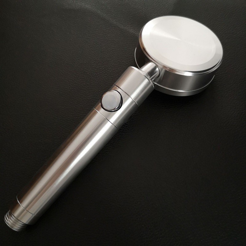 Vòi sen tăng áp nhôm đúc bạc xoay 360 độ có nút bật tắt nước, tay sen tăng áp nhôm đúc có nút bật tắt nước