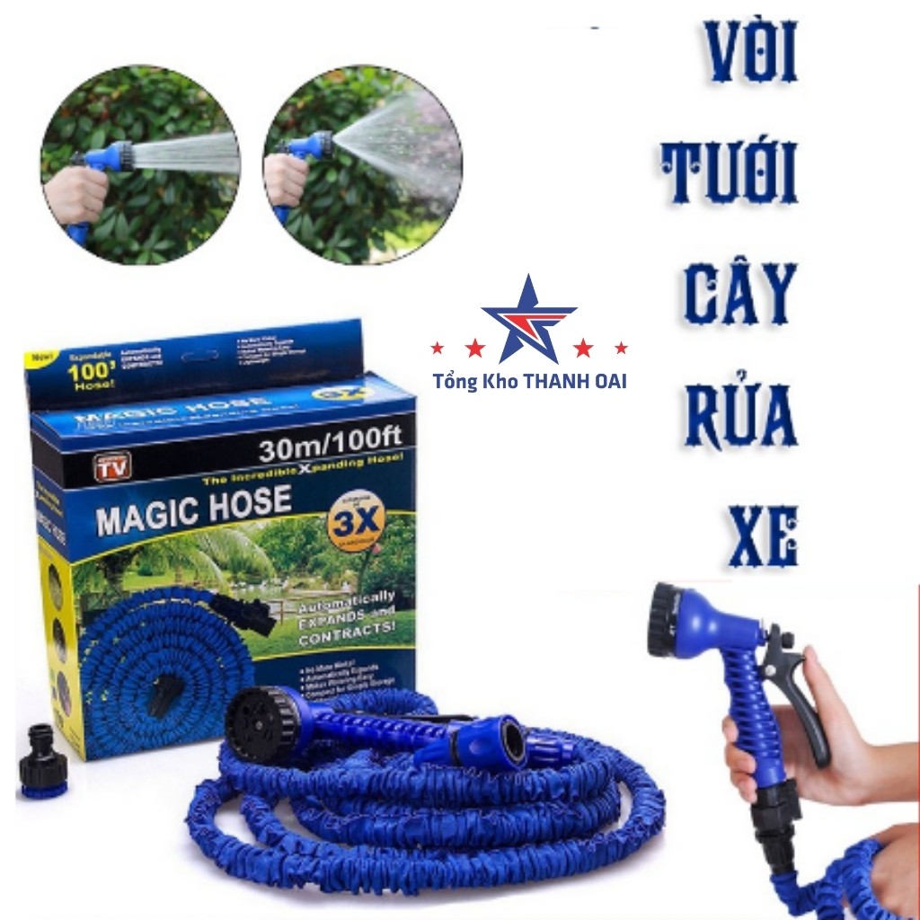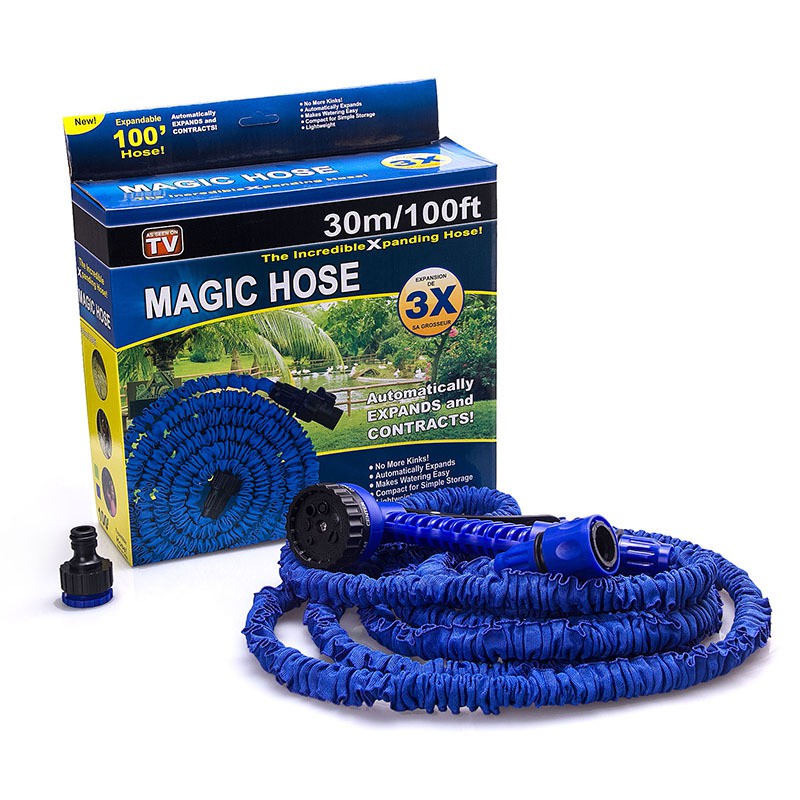 Vòi xịt nước thông minh Magic hose có độ co giãn cao tiện lợi cho việc rửa xe, tưới sân vườn, vệ sinh nhà cửa,…vòi chịu được áp lực nước cao gấp 3 lần so với các sản phẩm khác, sản phẩm còn có độ bền cao với lớp vải bên ngoài siêu bền chống chịu được các thời tiết khắc nghiệt ở nước ta