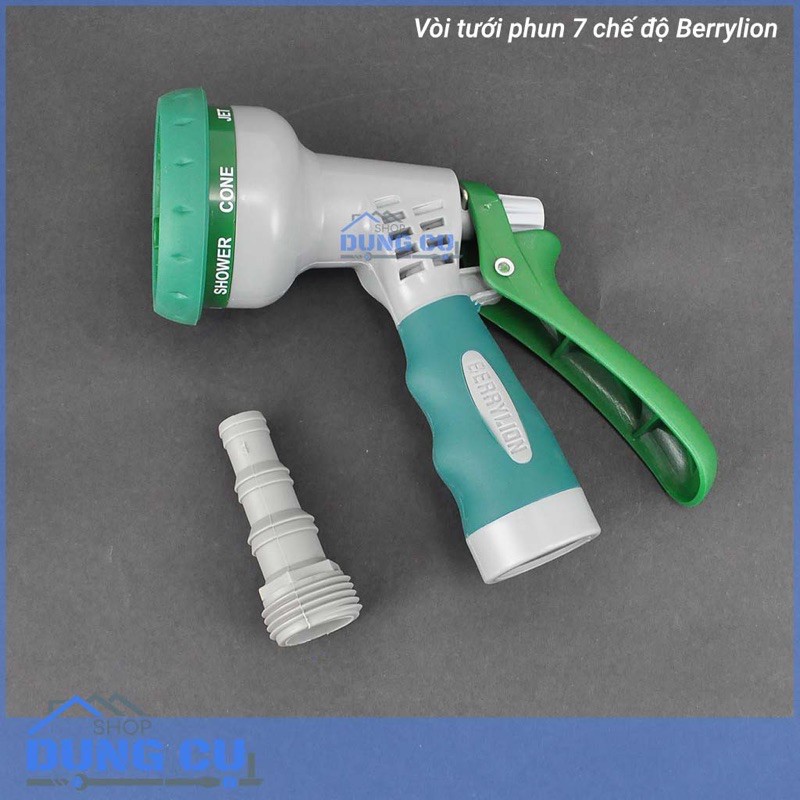 Bộ đầu tưới, xịt, rửa 7 chế độ Berrylion do Đài Loan sản xuất. Bộ đầu tưới với 7 chế độ tưới xịt rửa tiện lợi dễ dàng sử dụng.Vòi tưới vườn, xịt rửa cao cấp có thiết kế đẹp mắt, thông minh rất dễ cầm nắm. Việc kết nối vòi tưới với ống nước, nguồn nước cũng rất dễ dàng.