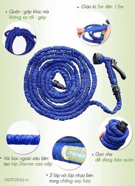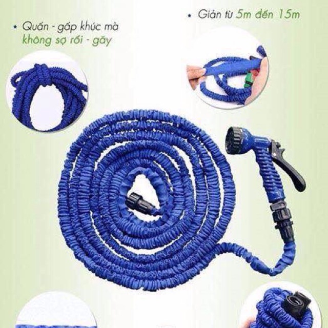Vòi rửa xe thông minh giãn nở 3 lần 15m với đầu vòi được thiết kế với chức năng điều chỉnh lượng nước phun ra vừa đủ theo từng mục đích sử dụng như tưới cây, tưới rau, rửa xe, rửa các vật dụng bám đầy bụi bẩn,… Sản phẩm không bao giờ bị xoắn hoặc gãy khi sử dụng. Khi không sử dụng nữa bạn chỉ cần tắt van sản phẩm sẽ tự thu nhỏ lại giúp bạn dễ dàng cất giữ và không tốn nhiều diện tích như các vòi xịt thông thường khác. Cùng với khả năng giãn nở khi sử dụng nên sản phẩm có chiều dài thích hợp khác với các sản phẩm thông thường khác khi bạn phải mua những vòi xịt vừa dài, vừa to rất cồng kềnh và nặng nề. Đây chính là sản phẩm cần thiết thay thế cho những vòi xịt thông thường trong ngôi nhà của bạn.