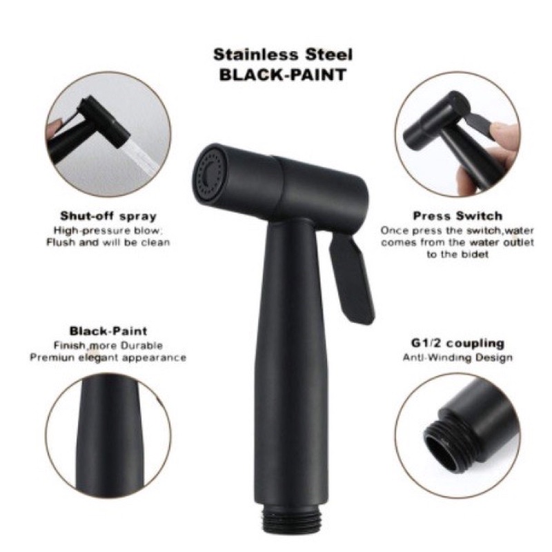 Vòi xịt vệ sinh màu đen, Vòi xịt toilet màu đen, Vòi xịt inox 304 màu đenVòi xịt vệ sinh màu đen sơn tĩnh điện, màu sắc bắt mắt