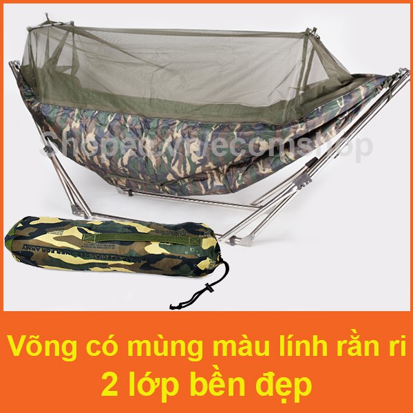 Võng có mùng màu lính rằn ri 2 lớp VIETTHAI2L có túi đựng bền đẹpSản phẩm có sức chịu được trọng lượng của 2 người