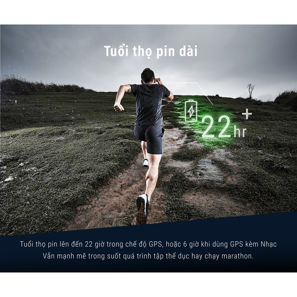 - Thời lượng pin: lên đến 7 ngày trong chế độ đồng hồ lên đến 6 giờ ở chế độ GPS với âm nhạc