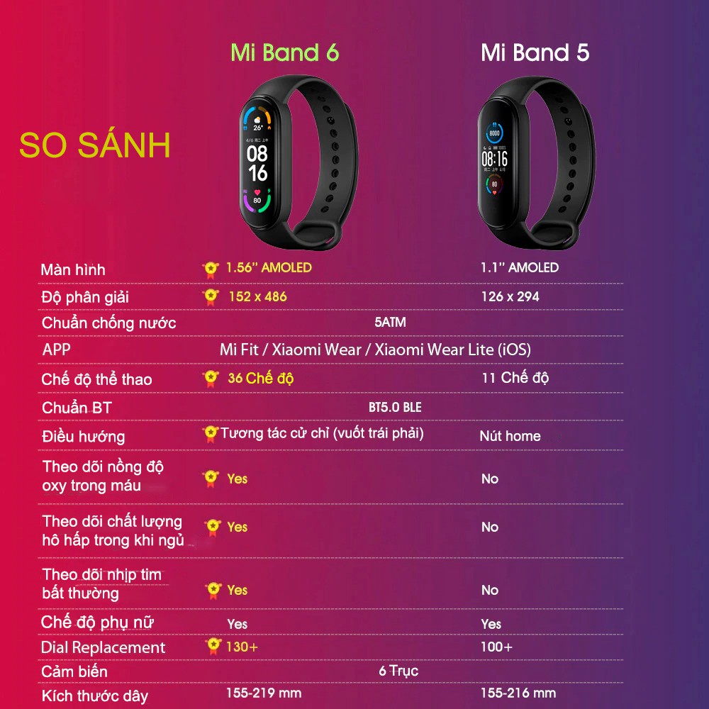 ➤ Đồng hồ thông minh Xiaomi Mi Band 6 có những gì và những nâng cấp so với mi band 5: