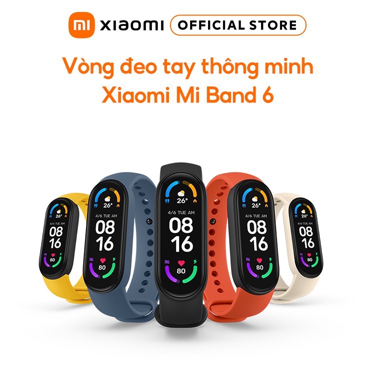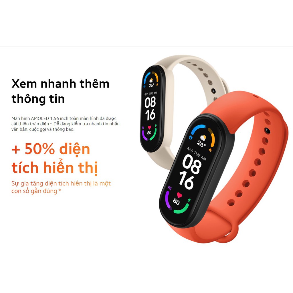 XIAOMI OFFICIAL STORE phân phối chính hãng Vòng đeo tay thông minh Xiaomi Mi Band 6.Vòng đeo tay thông minh Mi Band 6 thế hệ mới có màn hình AMOLED màu 1.56 inch, lớn hơn đáng kể so với kích thước 1.1 inch của Mi Band 5. Màn hình này cũng có độ phân giải cao hơn là 152 x 360 pixel, cho mật độ điểm ảnh 326 ppi. Mặt vòng tay 1.56” toàn màn hình đa dạng với hơn 60 mặt vòng tay để lựa chọn.
