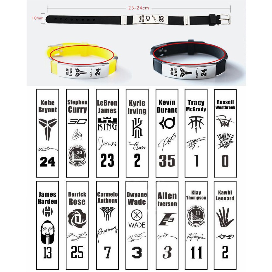Thể Thao & Dã Ngoại > Phụ Kiện Thể Thao & Dã Ngoại > Vòng Tay Thể Thao || Vòng Tay Bóng Rổ NBA 6.1 Dây Cao Su Mặt Titan Khác Logo Kobe Curry James Harden Kyrie Wade Duncan Durant RoseCòn hàng