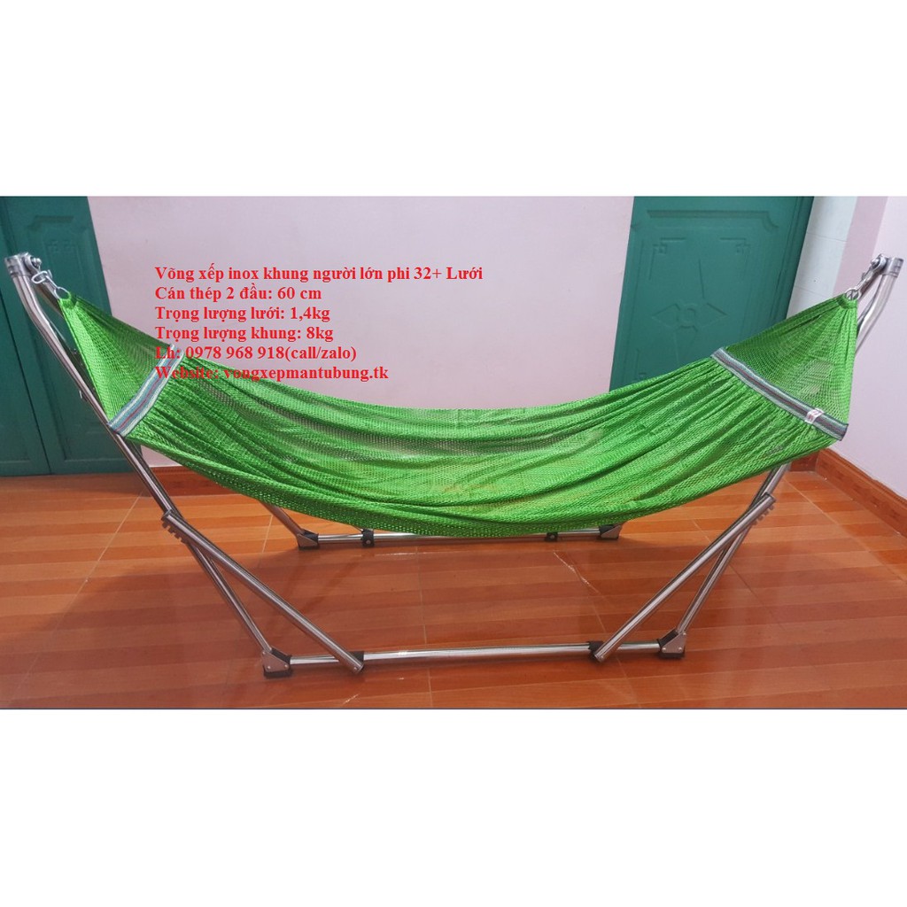 võng xếp inox 100%, sáng bóng, không rỉ sét size người lớn phi 32
