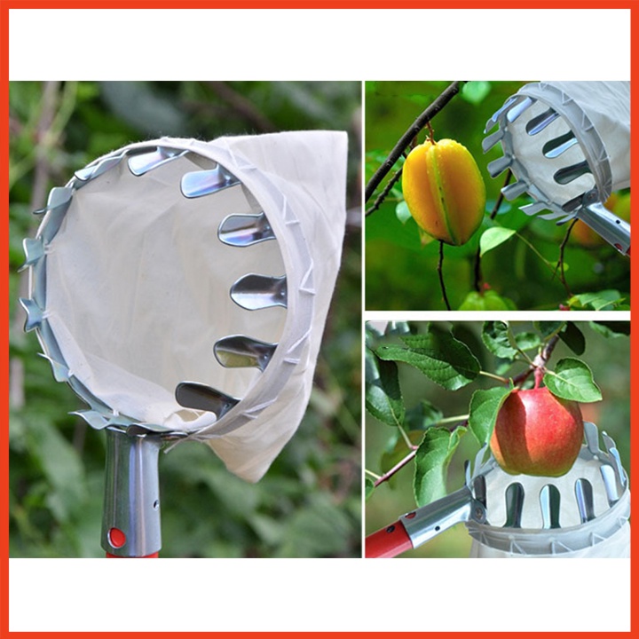 Vợt hái trái cây trên cao đa năng kèm túi vải, dụng cụ hái hoa quả kim loại siêu bền đẹpThu hoạch trái cây trên cao là công việc khó khăn, nhất là thu hoạch các loại cây ăn trái có tán to cao rộng như xoài, vú sữa, thanh trà, măng cụt, Bình thường nhà vườn thường dùng các loại lồng bằng tre đan để thu hoạch nhưng chúng có nhược điểm là không giữ lại cuống được, trái cây dễ bị trầy sướt, lồng nhanh hỏng yếu ớt.