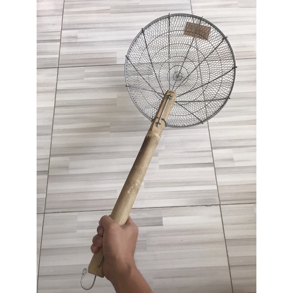 VỢT VỚT ĐỒ CHIÊN XÀO TRỊNH PHI_ Chất liệu: lưới kẽm đan máy chắc chắn, cán gổ tầm vong già rất cứng cáp chắc chắn