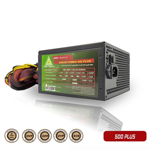 Giới thiệu Nguồn VSPTECH Green Power 500 Plus 500W + Dây Nguồn