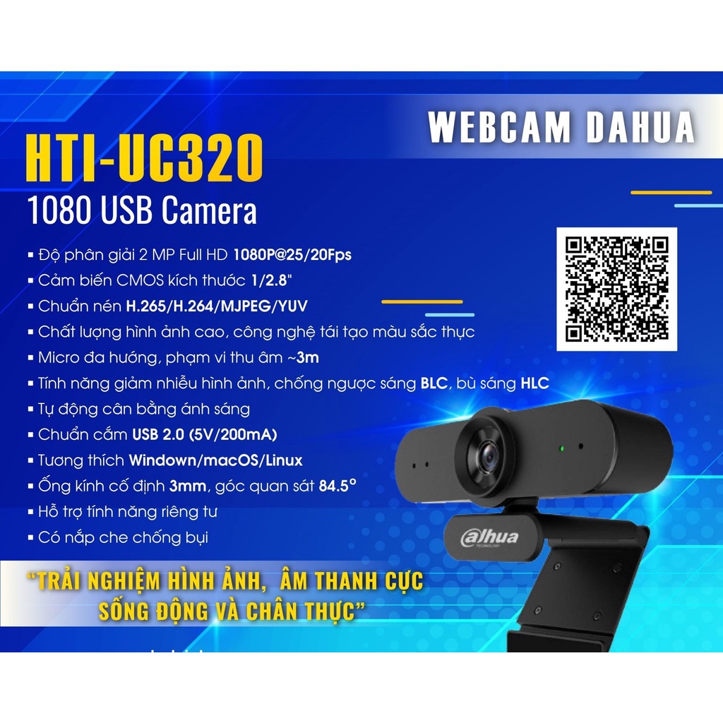 Máy tính & Laptop > Phụ Kiện Máy Tính > Webcam || [Mã 253ELSALE hoàn 7% đơn 300K] Webcam Dahua UC320 Full HD 1080p có mic - học online BH 24 tháng DSS Phân PhốiCòn hàng