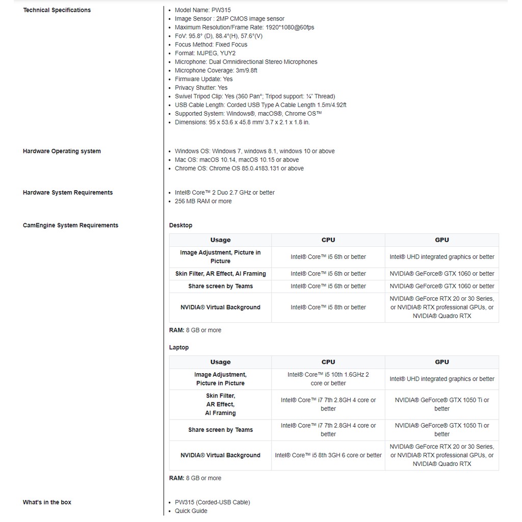 * Thông tin sản phẩm:- Tên sản phẩm: Webcam Live Stream AverMedia PW315 chuyên nghiệp HD 1080p Wide Angle Webcam