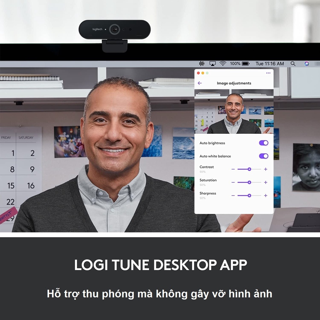 - Logitech BRIO sở hữu các mic đa hướng kép tích hợp với công nghệ chống ồn