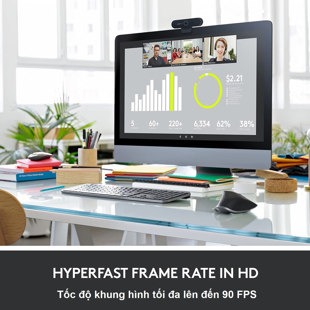 - Logitech BRIO 4K Pro mang đến cho người dùng trải nghiệm tuyệt vời với chi tiết và độ mượt mà vượt trội các dòng sản phẩm khác